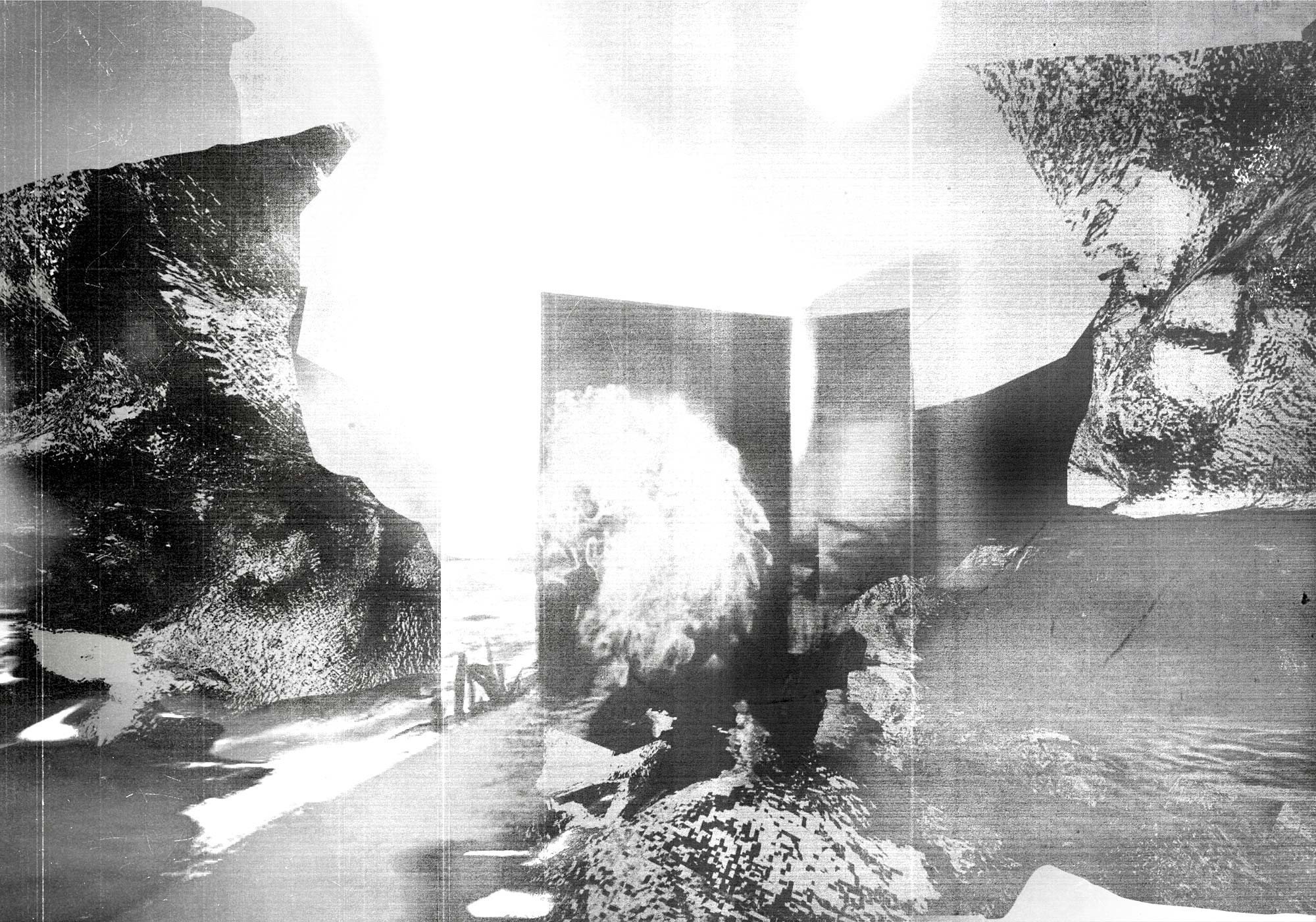 The landscape explored is a mash-up of dystopia and serenity. Blurred by a lo-res fog, illuminated by a misbehaving artificial and digital vaseline to fill in any gaps